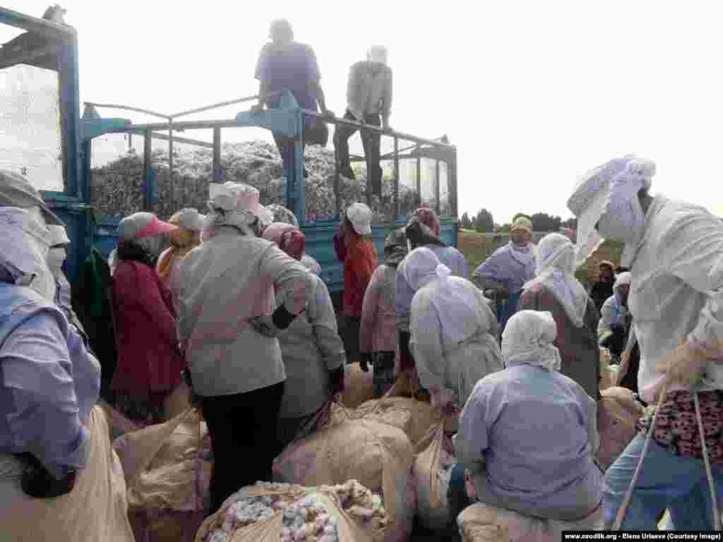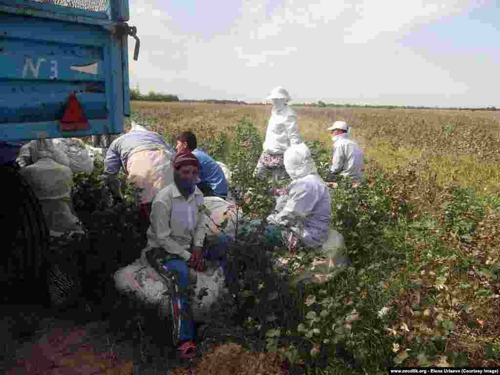 С началом хлопкоуборочной кампании в Узбекистане чиновники отправляют на поля людей всех возрастов и профессий. Несмотря на то, что привлекать к такой работе лиц младше 18 официально запрещено, школьники собирают хлопок наравне с взрослыми. На полях можно встретить и пенсионеров. Некоторые клиники в Узбекистане в это время закрыты - студенты-медики и врачи также трудятся на хлопковых плантациях. Фото Узбекской редакции РРСЕ/РС.