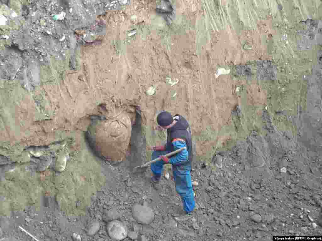 В Оше на месте строительства эстакадного моста был найден средневековый глиняный кувшин.