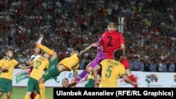 Статистика: кыргызстанцы 16 раз ударили в сторону ворот австралийцев, один удар в створ. Игроки Socceroos ударили 5 раз, 2 раза в створ, забили 2 мяча.