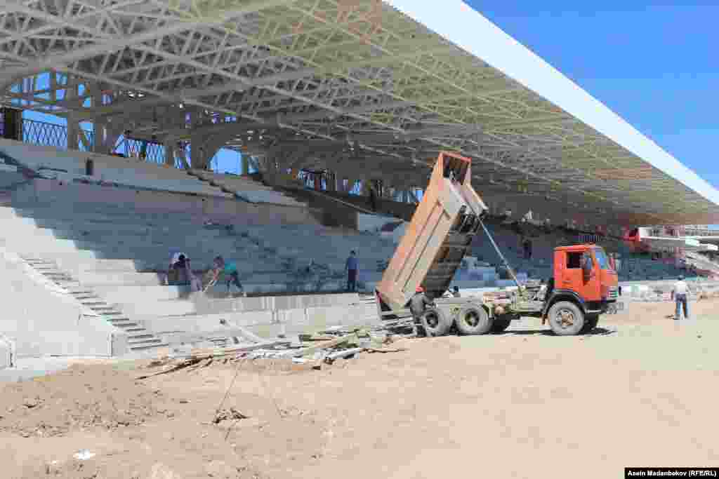 До открытия II Всемирных игр кочевников осталось ровно три недели. Строительные работы на главной арене ВИК - ипподроме в Чолпон-Ате - ведутся до сих пор. корреспондент "Азаттыка" ознакомился с подготовкой к играм.