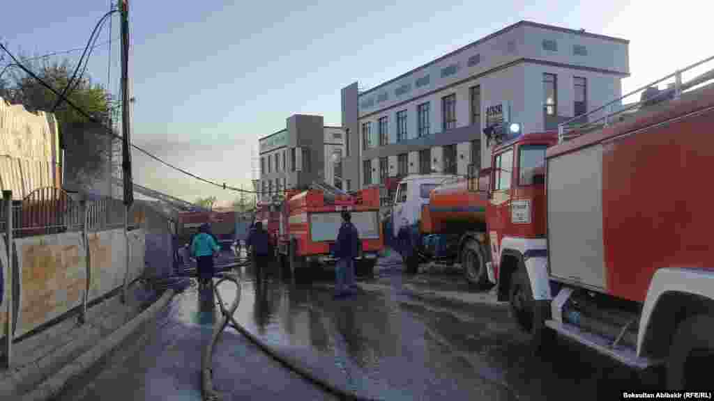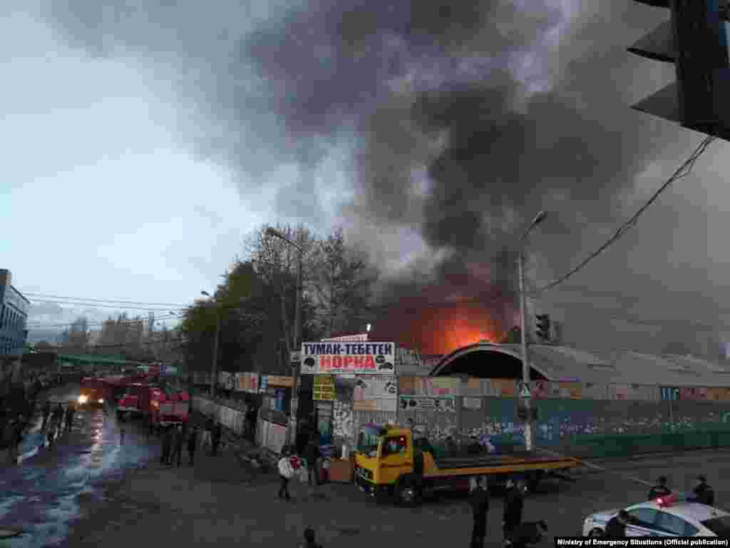 На Ошском рынке в Бишкеке произошел пожар. Как сообщает пресс-служба МЧС, сообщение о возгорании поступило на пульт дежурного около 03:52 в пятницу, 13 апреля. Огонь охватил торговые ряды рынка «Берекет», что на пересечении улиц Кулиева и Киевской. Пожар потушен.