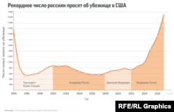 В 2017 году убежище в США попросили 2664 россиянина – это абсолютный рекорд за последние 24 года и на 39% больше, чем попросили убежища в 2016 году. Официальную статистику по теме корпорация Радио Свободная Европа/Радио Свобода получила от министерства внутренней безопасности США (Служба гражданства и иммиграции), подав запрос в соответствии с федеральным Законом о свободе информации в США.​