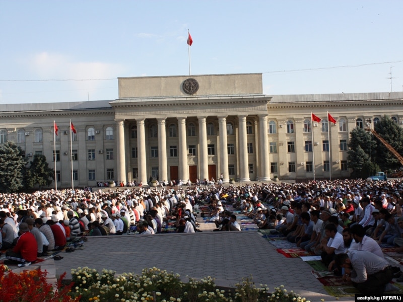 Праздничный намаз в честь Ид аль-фитра в центре Бишкека, сентябрь, 2010 г.