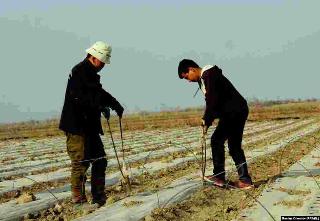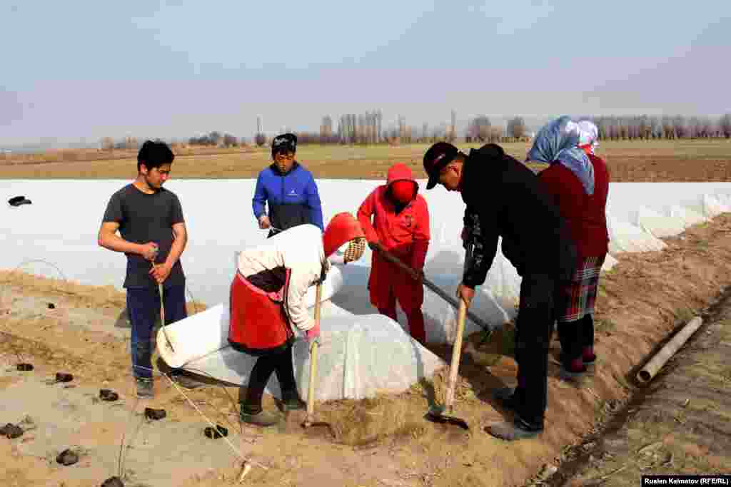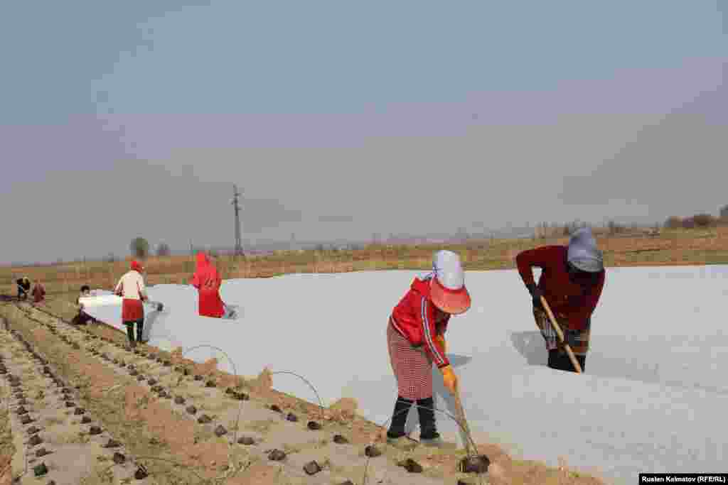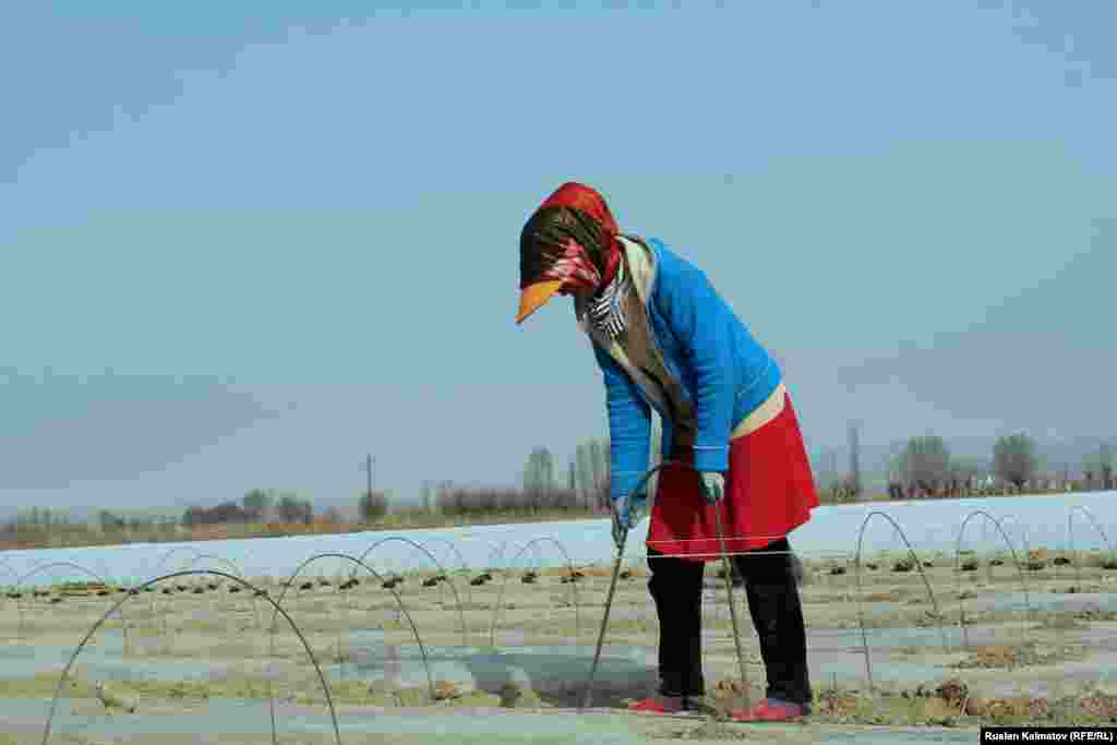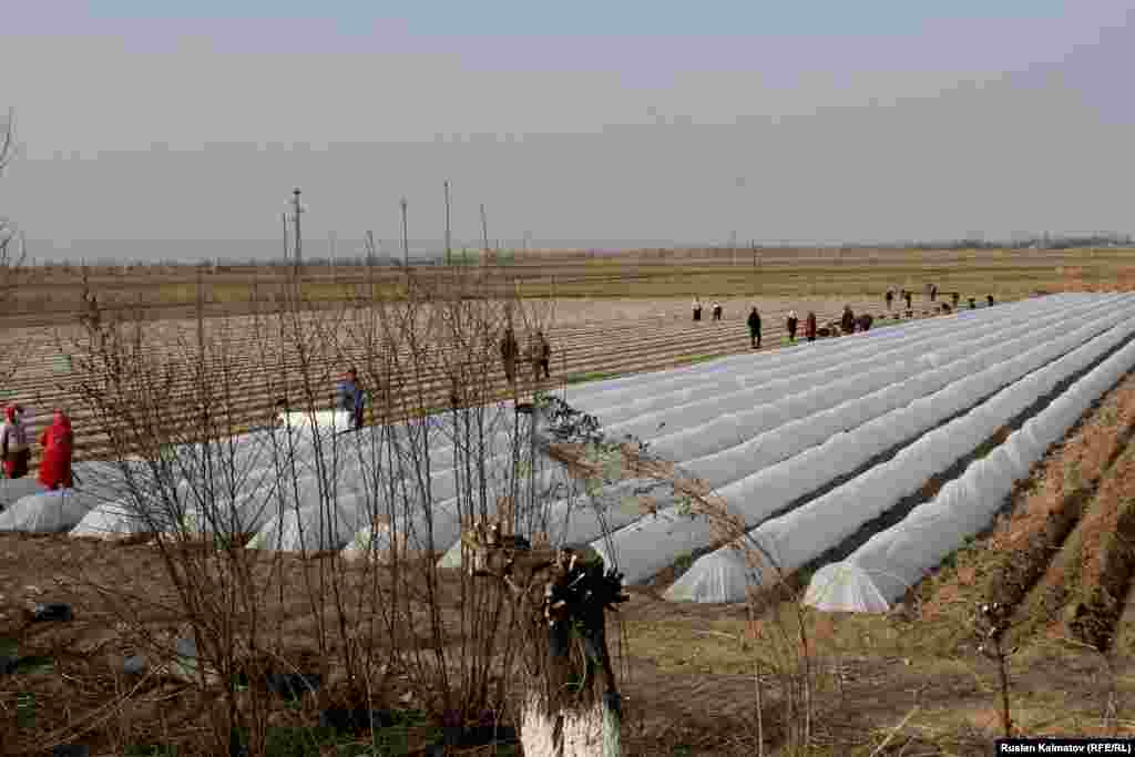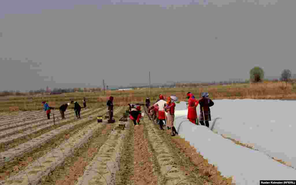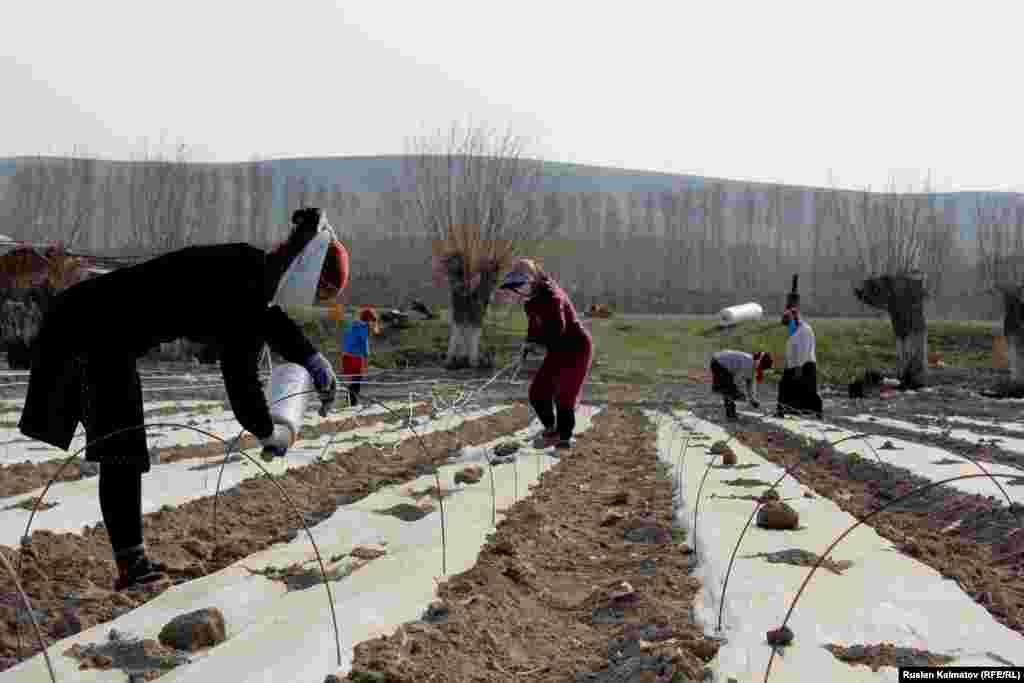 На полях Джалал-Абада в разгаре весенние полевые работы. Плантации в Ноокенском районе заполнили молодые девушки и женщины. Эти фотографии запечатлели первые выходы на поля фермеров, которые настроились получить ранний урожай.